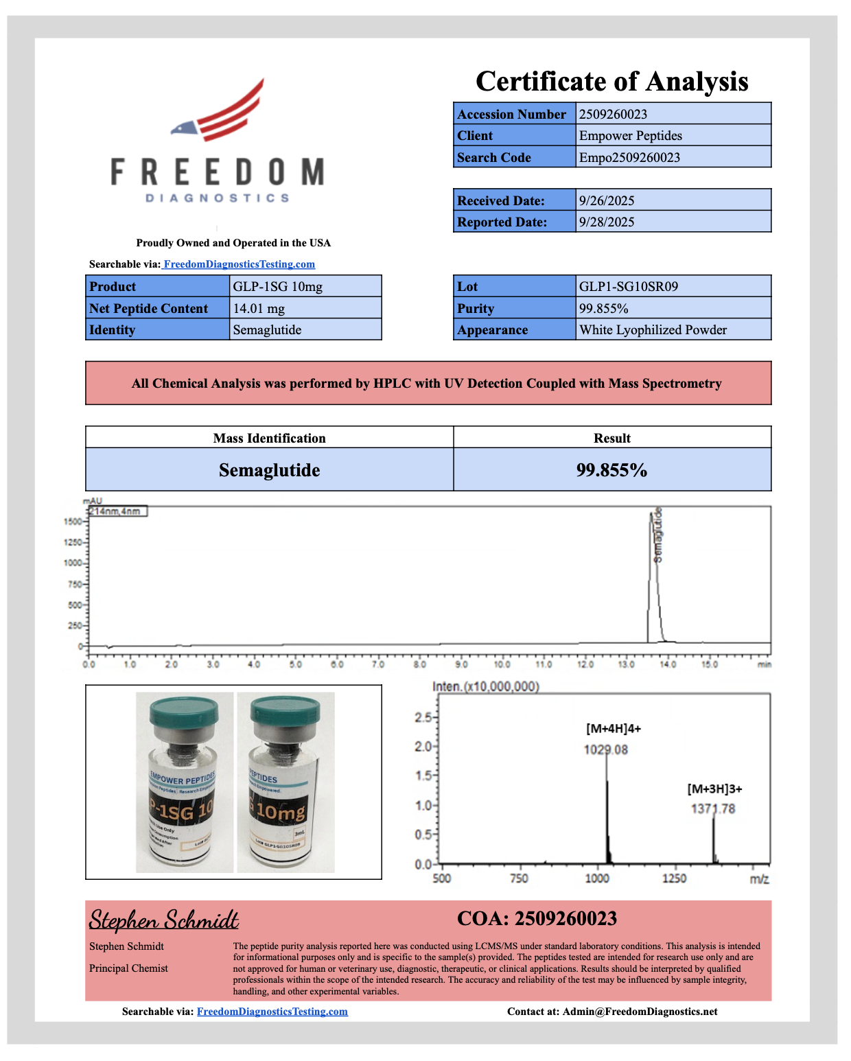Batch / Lot Number COA: EMP-GLP1SG-250528-A
