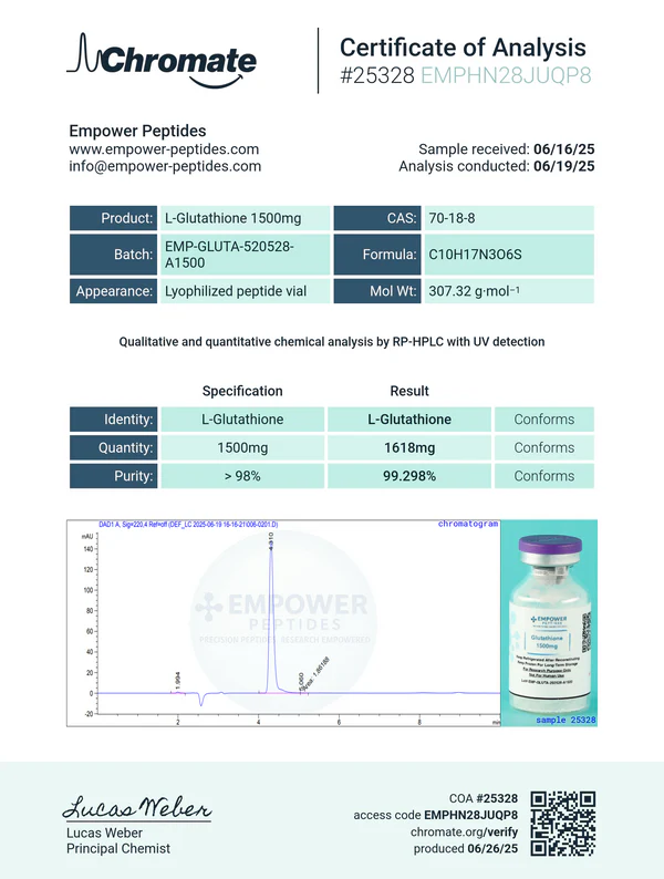 Glutathione is a naturally occurring tripeptide composed of glutamine, cysteine, and glycine. It is widely utilized in controlled laboratory environments for studies involving redox balance, oxidative processes, and biochemical pathway modeling. Its structure makes it suitable for examining intracellular reactivity and stable-state peptide interactions.