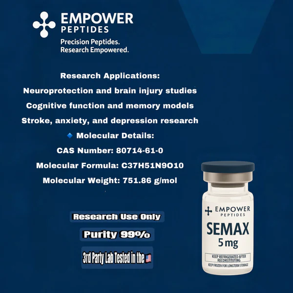 Semax is a synthetic heptapeptide derived from the ACTH(4–10) fragment and is widely examined in laboratory environments for its roles in neurological signaling, peptide–receptor interactions, and regulatory pathway modeling. Its defined amino acid structure makes it a useful tool for exploring mechanisms related to central nervous system pathways and neuroregulatory peptide behavior.
